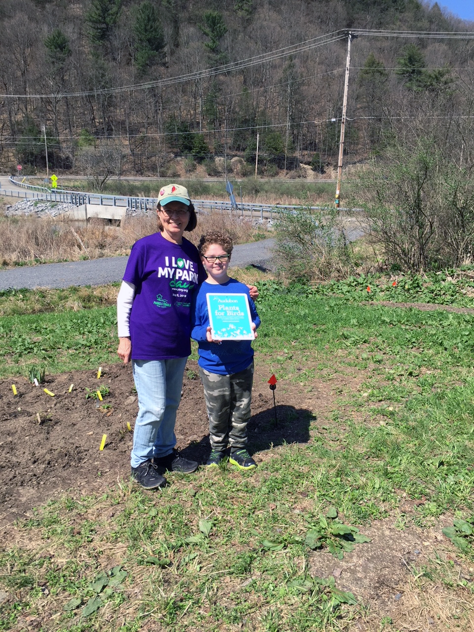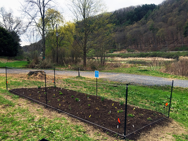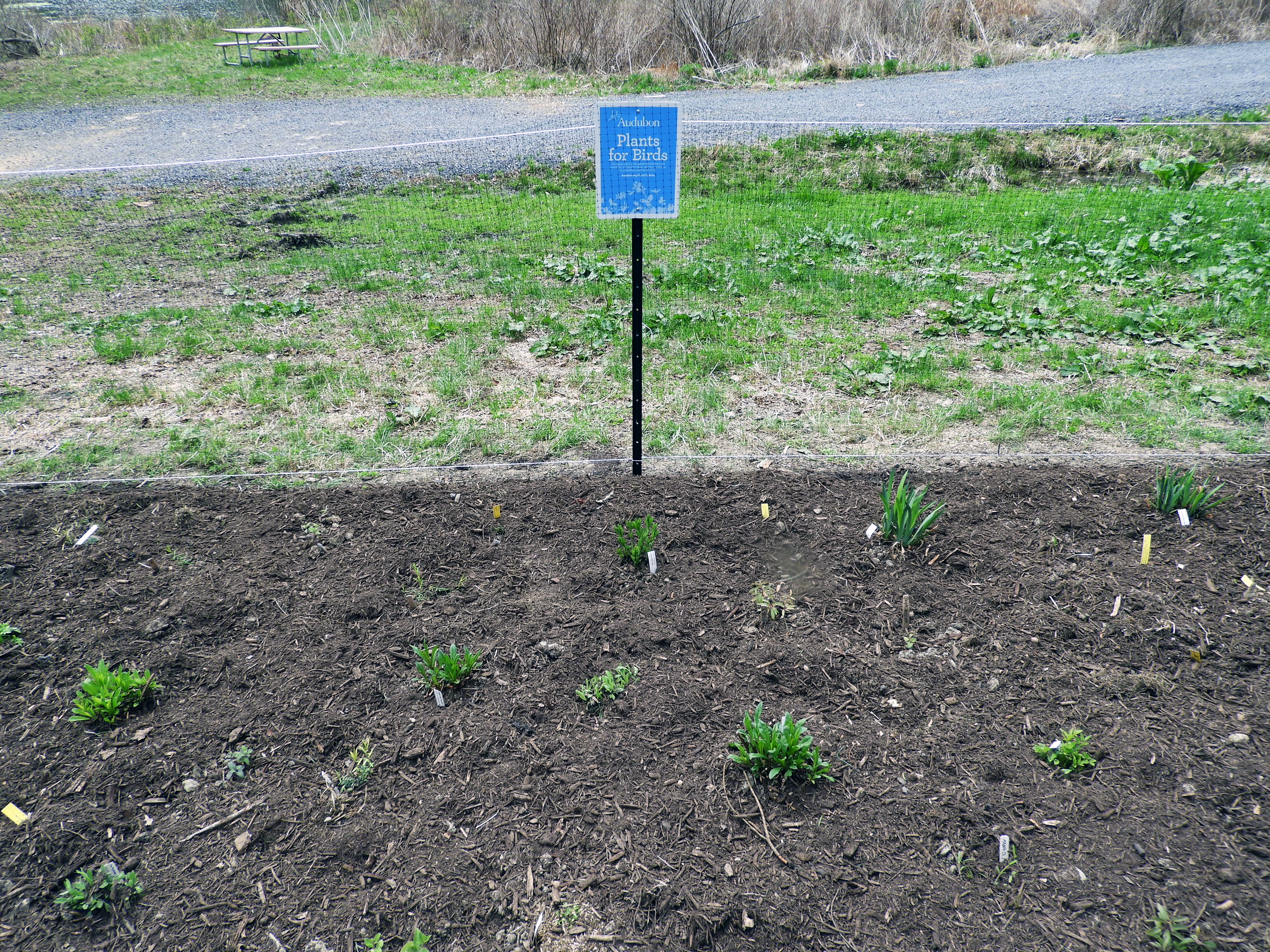 Chemung Valley Audubon Society had already rototilled a 160sqft (8' x 20') area by the parking lot at Mark Twain State Park. Compost donated by Chemung County Soil and Water Conservation District was spread and rototilled into the planting bed.