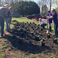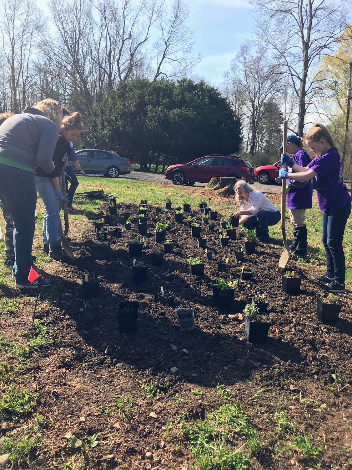 CVAS purchased native wildflowers species approved by NYS Parks at Plantsmen Nursery in Ithaca, NY. Volunteers randomly placed and planted approximately 50 potted plants of nearly 15 native wildflower species including wild bergamot, swamp milkweed, golden Alexander, mountain mint, blue vervain, cardinal flower, gray goldenrod, tall white beardtongue, wild blue indigo, boneset, Joe-pye weed, blue flag iris, and New England aster. We installed deer fencing around the garden to shelter the plants from deer and geese.